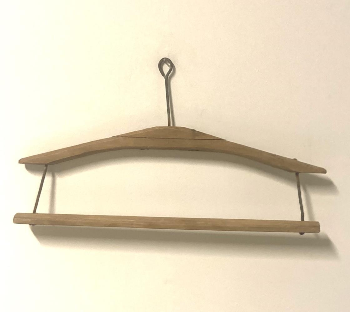 Herðatré, heimasmíðað, gert fyrir jakka og buxur. Breidd 45 cm. Gefandi Snorri Björnsson bóndi Seljalandi í Fljótshverfi: