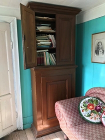 Bókaskápur smíðaður af Hirti Oddssyni í Kirkjubæ og úr eigu hans. Úr dánarbúi Sigríðar Hjartardóttur frá Eystri-Kirkjubæ.