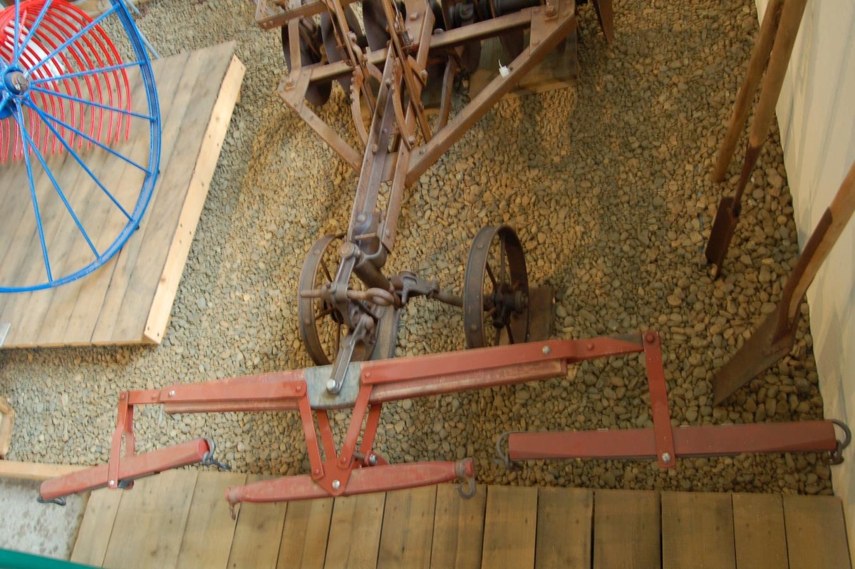Þrískiptir hemlar sem komið hefur verið á diskaherfi nr. 1169 (2002-2-1) frá Stóra Sandfelli. Það er uppgert og rauðmálað af Jóhannesi Ellertssyni. Mjög líklega heimabreyttir hemlar en Jón Gíslason bóndi í Árdal/Innri-Skeljabrekku þaðan sem hemlarnir eru frá hafði eldsmiðju í skemmu sinni. Hemlarnir eru frá syni Jóns, Pétri í Árdal/Hvanneyri.