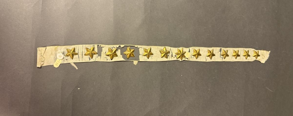 Koffurband Jónínu Sigurðardóttur í Steinmóðarbæ. Með gylltum silfurstjörnum.