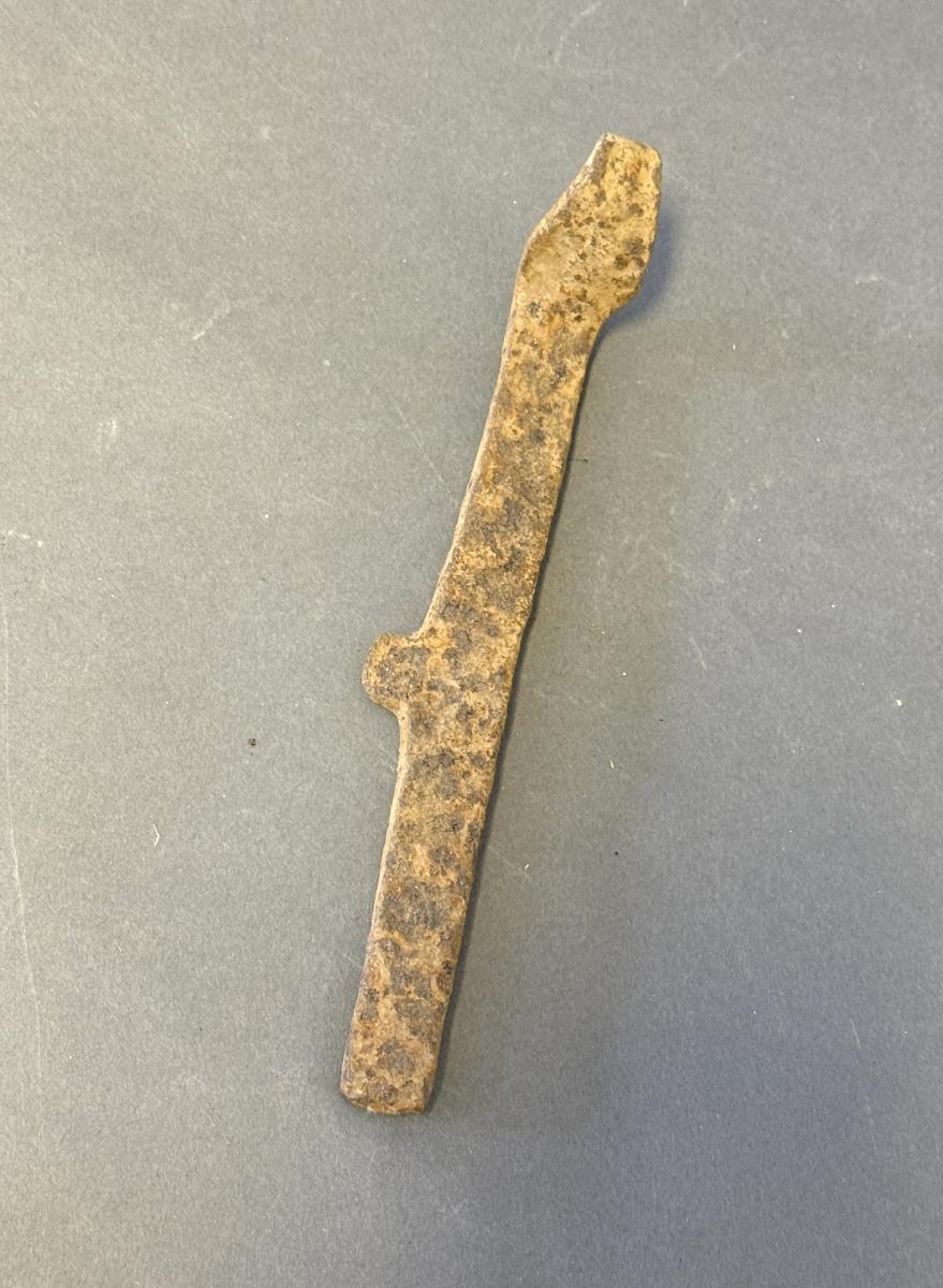 Renniloka úr járni, frá hurðaskrá, 16,5 cm á lengd. Vel gerð. Komið úr búi Oddgeirs Ólafssonar og Þórunnar Einarsdóttur í Eyvindarholti, síðar í Dalsseli.