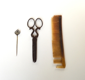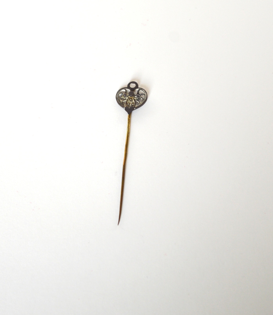 Laufaprjónn, laufið (milla) úr silfri en prjónninn úr kopar. Prjóninn fann Þórunn Jónsdóttir í Árkvörn í kistu sinni og vissi aldrei hvaðan voru komnir.