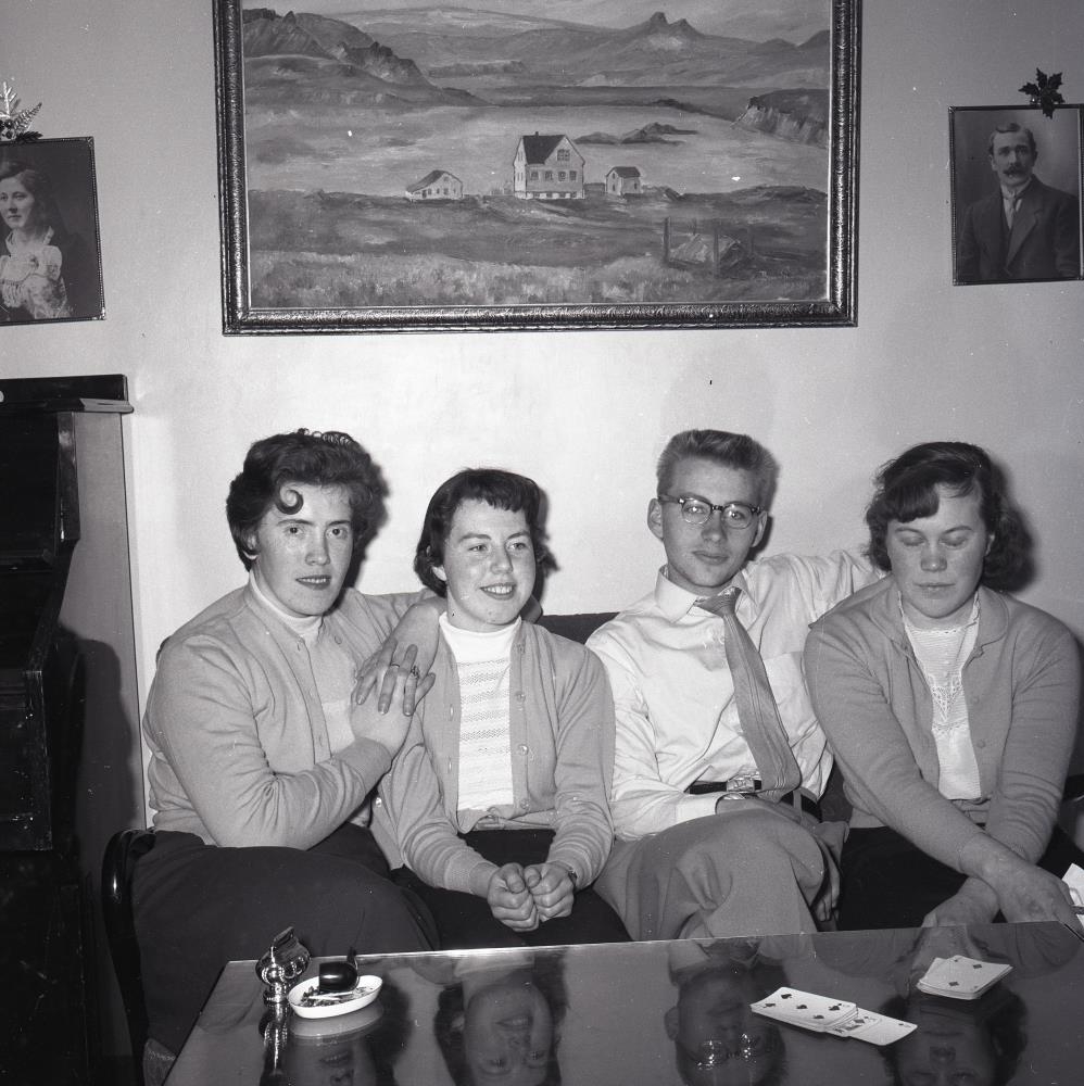 Helga Sigurbjörnsdóttir á Ingunnarstöðum, Guðný Jóna (Gulla) Jónsdóttir í Skálanesi, óþekktur maður og óþekkt kona.