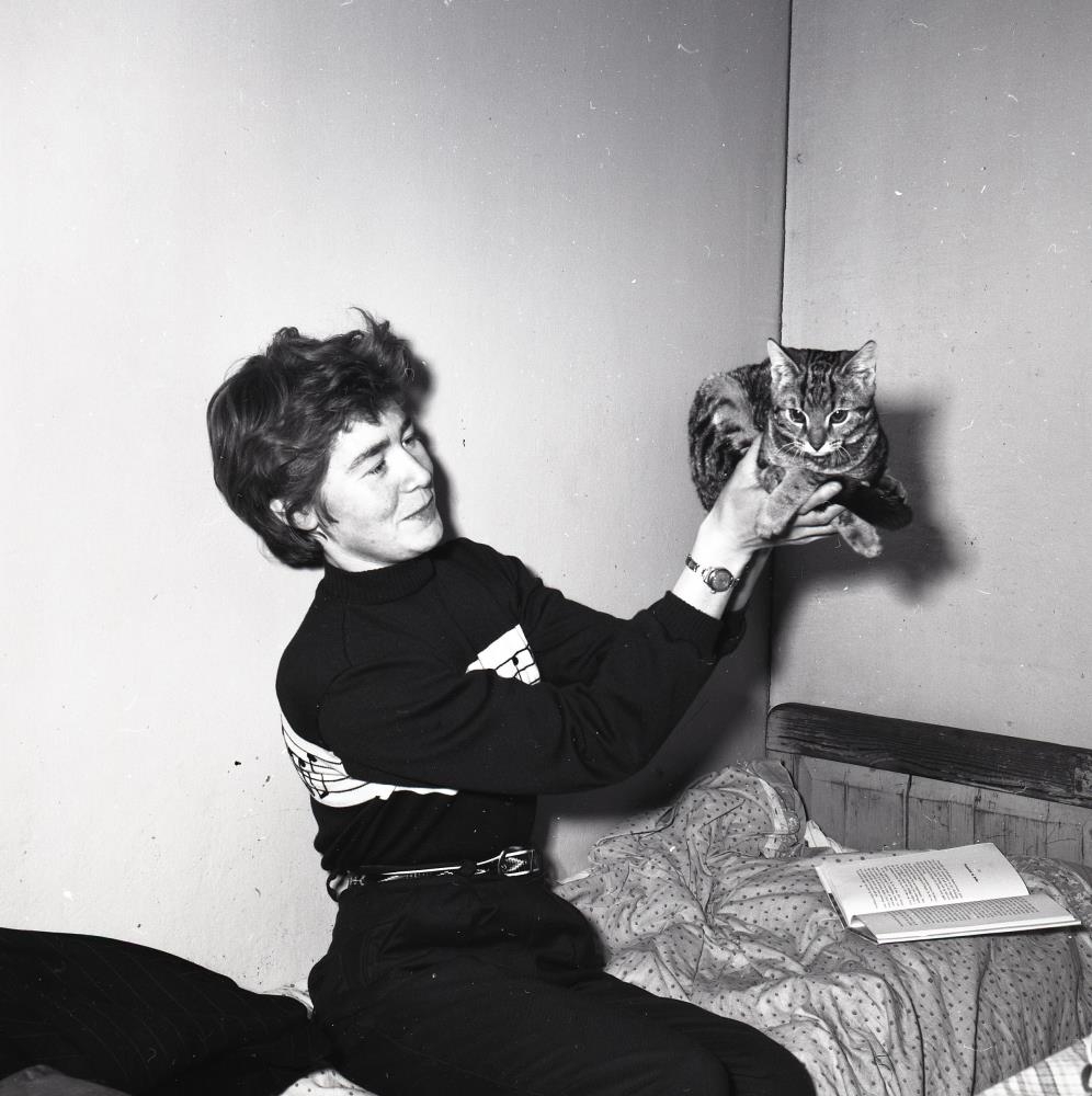 Lára Hjartardóttir á Fossi í Saurbæ og Nafnlausi kötturinn.