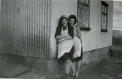 Systurnar Karitas og Elísabet Halldórsdætur frá Vörum í Garði, matseljur á vertíð í Sandgerði í kringum árið 1950.