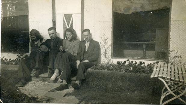 Frá vinstri: Systkinin Valgerður Ingimundardóttir og, Guðmundur Ingimundarson frá Garðstöðum í Garði, Halldóra Halldórsdóttir frá Vörum í Garði og Bjarni Sigurðsson frá Hausthúsum í Garði.