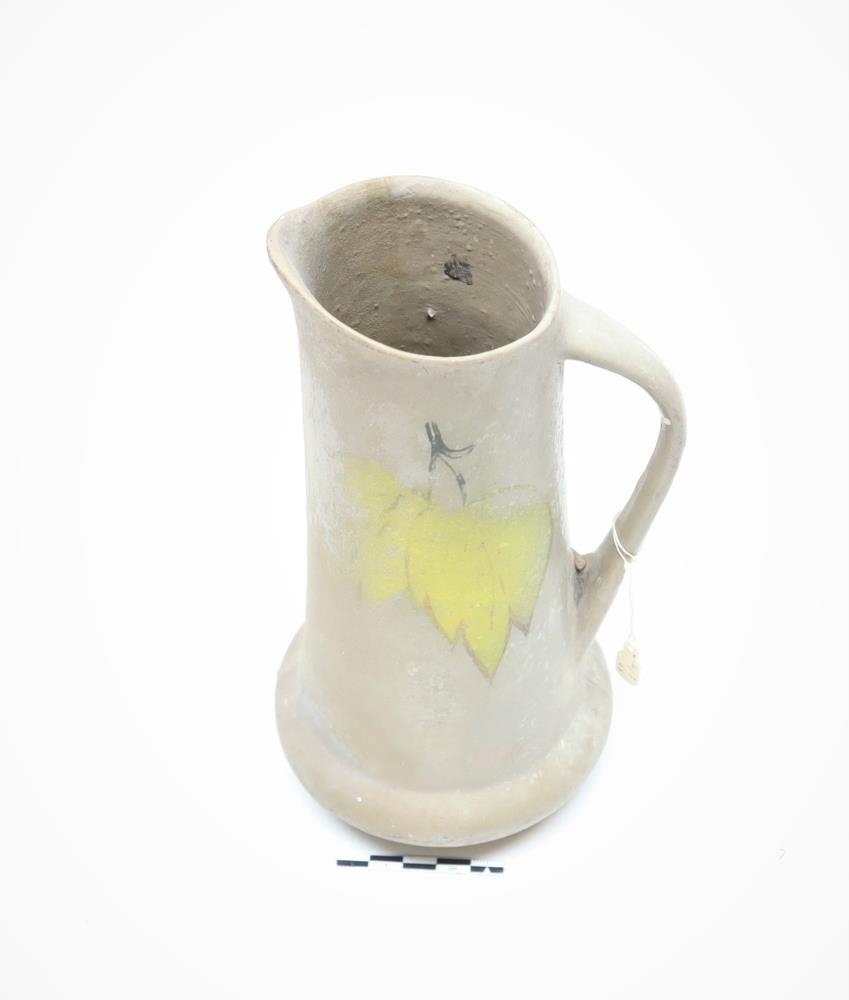 Kanna frá Grund í Vesturhópi. Gul laufblöð prýða könnuna.