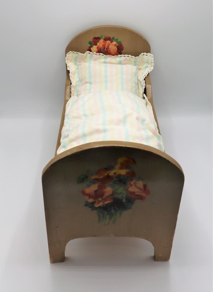 Brúnt trérúm smíðað af Guðjóni Jónssyni afa gefanda handa móður gefanda, Vilborgu. Málað af Engilbert Gíslasyni. Rúmföt fylgja með, ekki vitað hver saumaði. Kannski Guðrún Grímsdóttir (1888-1981), kona Guðjóns.