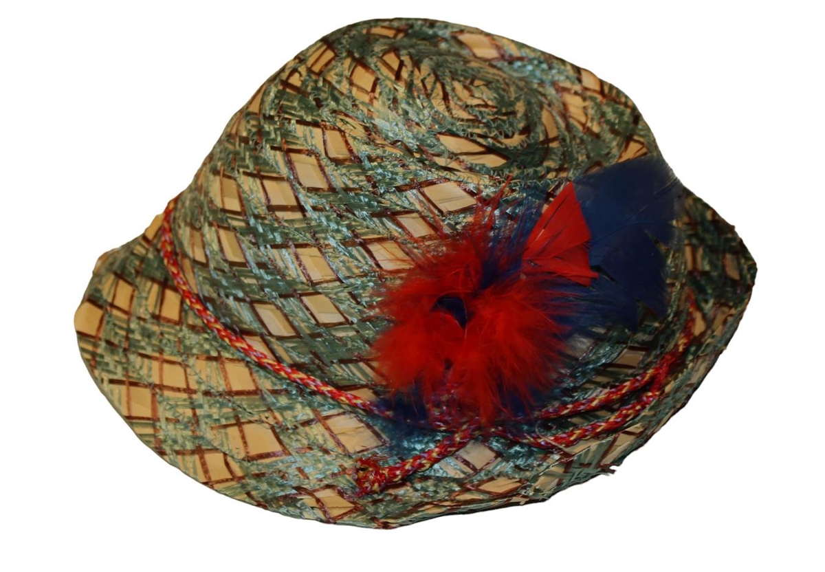 Litríkur hattur úr gervistráum, liklega fyrir dreng