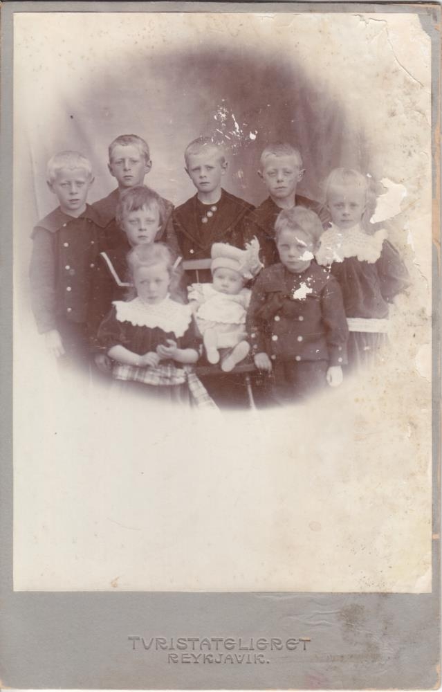 Á myndinni eru börn Þórunnar og Augusts Flygenring. Tv. Garðar, Þórarinn, Ingólfur, Þórður, Halldóra, Sigurður stendur fyrir framan Þórarinn. Fremst f.v. Elísabet, Sigríður og Ólafu rHaukur. Ófæddar eru Unnur og Anna.
