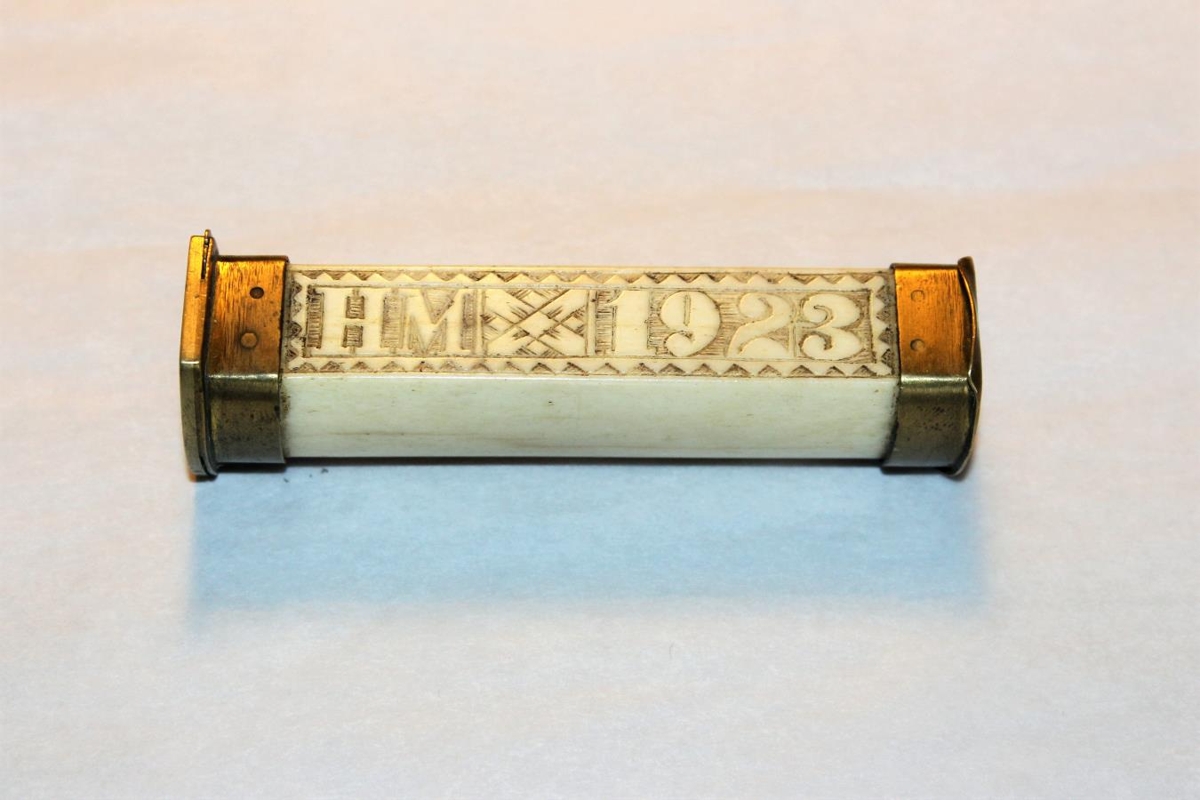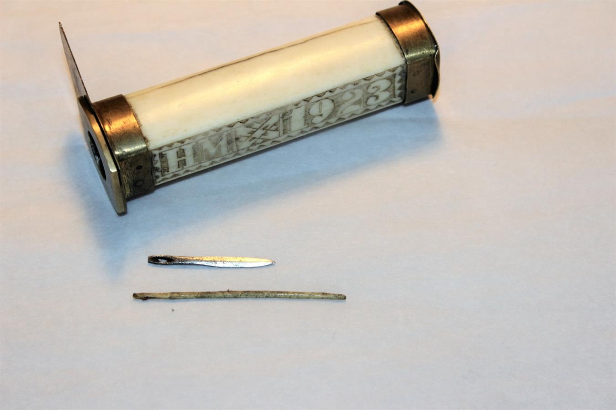 Nálhús smíðað úr hrosslegg, koparbúið. Það er útskorið á tveimur hliðum, blaðskraut á annarri, en á hina er letrað: H.M. 1923. Nálhúsið var gefið Halldóru Magnúsdóttur af manni hennar Jóhanni Teitssyni.