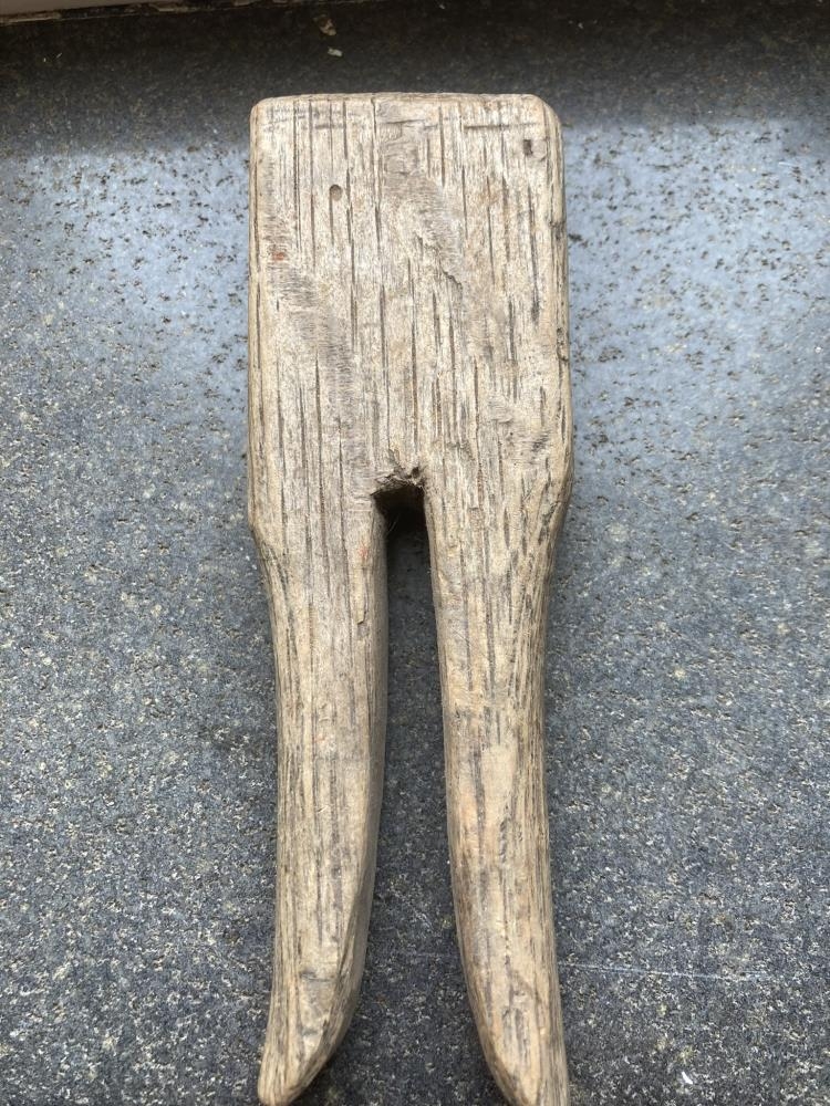 Þvottaklemma úr eik, lengd 12,5 cm. breidd 4 cm. Frá Húsum í Holtum. Úr búi Mensalder Raben og Guðrúnar Gísladóttur.