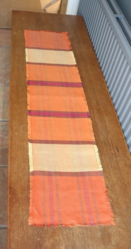 Handofinn, gulur og appelsínugulur renningur á borð