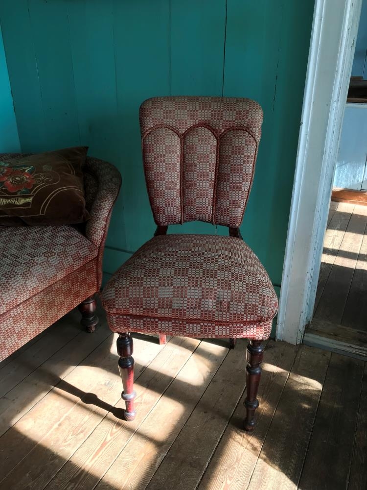 Stofustóll, klæddur með salúni, brúnleitu (rúðumynstur). Gefendur Páll Ævar Pálsson tannlæknir í Kópavogi, Stefán Pálsson og ( Bergþóra) Karen Pálsdóttir nú búsett á Spáni. Úr búi Páls Sigurðssonar bónda í Skammadal í Mýrdal og Bergþóru Sveinsdóttur konu hans. Kom frá dánarbúi móðurbróður þeirra systkina, Sveins Pálssonar í Blönduhlíð 7, Reykjavík, sem dó 2003. Einnig úr búi Ársæls Sigurðssonar skólastjóra og Sigurbjargar Pálsdóttur, Blönduhlíð 7.
