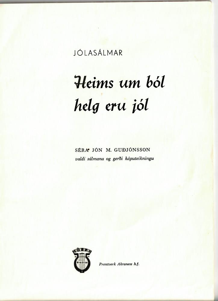 Heims um ból, helg eru jól : jólasálmar / Jón M. Guðjónsson valdi og Gyða L. Jónsdóttir teiknaði