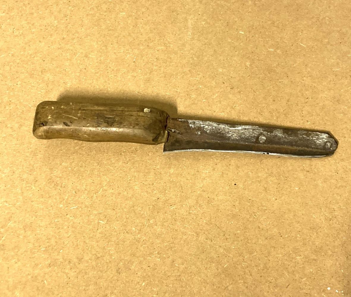 Gæruhnífur, bútur úr Ólafsdalsljá, tréskeftur. Lengd 25 cm. Notaður til að raka sauðagærur. Gefendur Páll Ævar Pálsson tannlæknir í Kópavogi, Stefán Pálsson og ( Bergþóra) Karen Pálsdóttir nú búsett á Spáni. Úr búi Páls Sigurðssonar bónda í Skammadal í Mýrdal og Bergþóru Sveinsdóttur konu hans. Kom frá dánarbúi móðurbróður þeirra systkina, Sveins Pálssonar í Blönduhlíð 7, Reykjavík, sem dó 2003. Einnig úr búi Ársæls Sigurðssonar skólastjóra og Sigurbjargar Pálsdóttur, Blönduhlíð 7.
