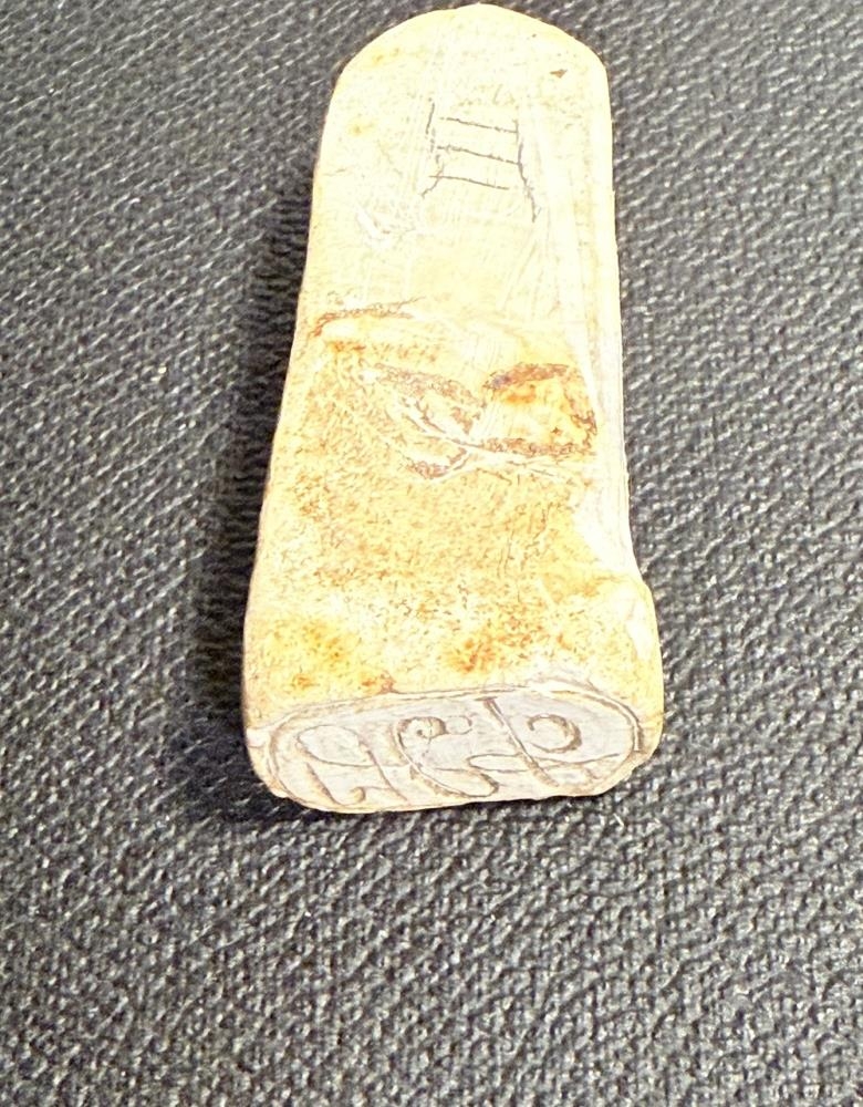 Signet Helga Þorsteinssonar frá Skammadal úr alabaststeini, verk afa Helga, Jóns Þórðarsonar í Skammadal.