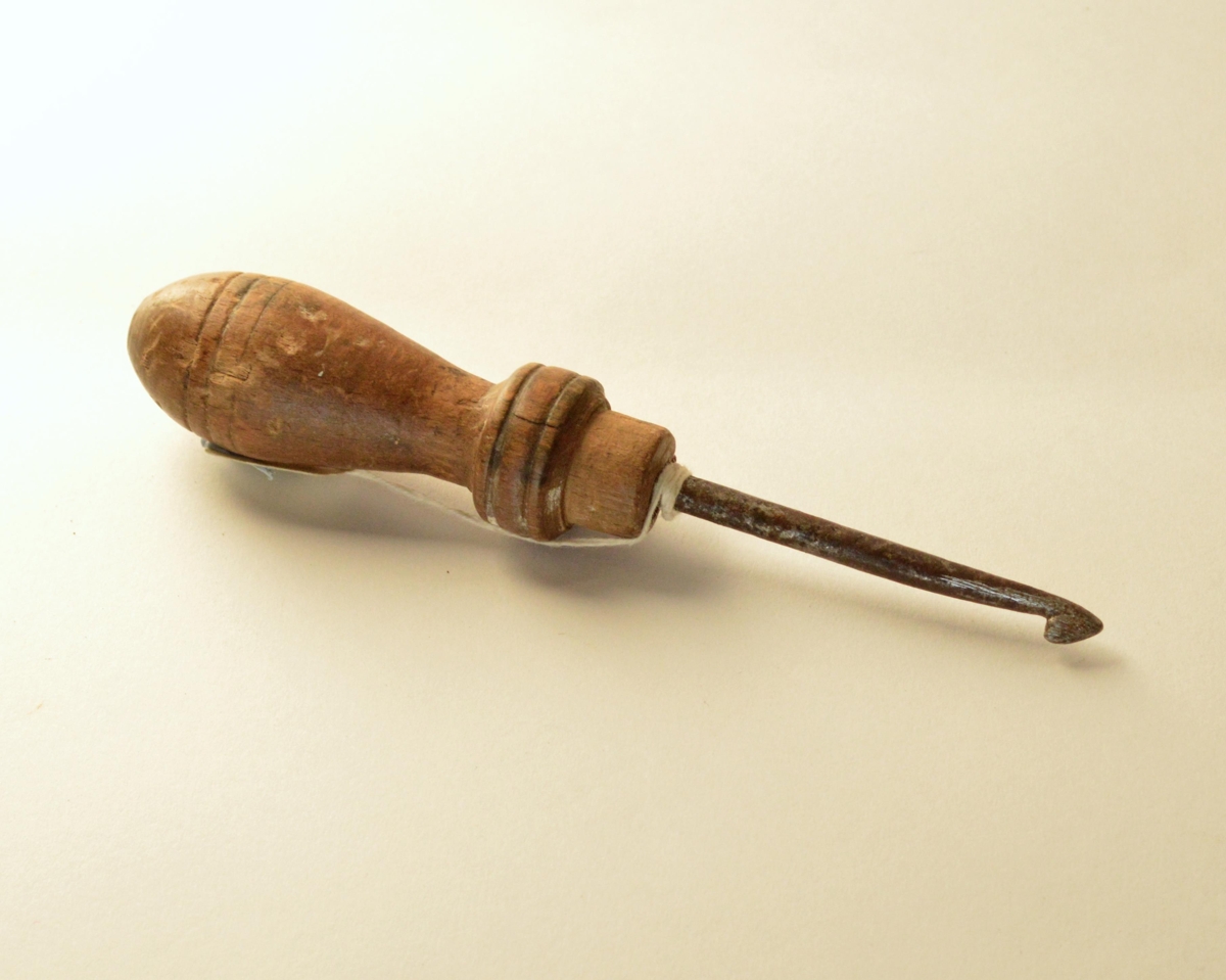 Heklunálin, sem hrosshársmottan nr.3414 er hekluð með. Er með renndu tréskafti.