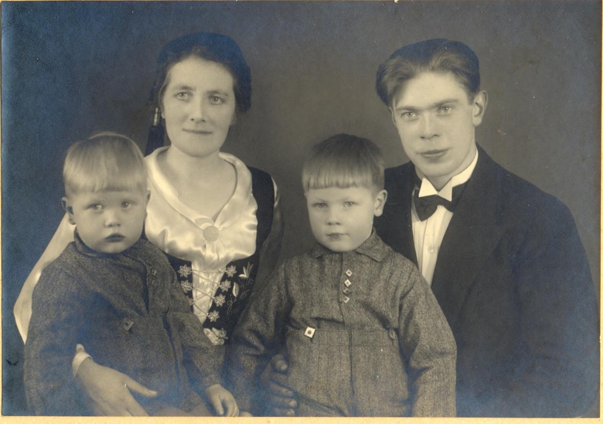 Hjónin Kristinn Árnason skipstjóri frá Gerðum í Garði og Kristín Eyjólfsdóttir húsfreyja og stöðvarstjóri póst og síma í Garðinum með syni sína Eyjólf Árna og Þorstein.