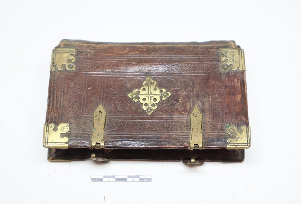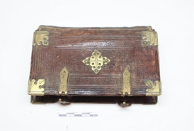 Bókaspjöld Sálmabók. Bókaspjöld eru þykk. Leður klætt utan um Tré. Stærð 16.5 cm, Dýpt 9 cm, Þykkt 3 cm. Silfur er í hornum kápu og í miðju. Úr eigu Daða Davíðssonar á Gilá. Frá 17. frekar en 18. öld. Innan í liggur rifrildi af sálmabók frá 1907 með nafninu J. Jónsdóttir skrautrituðu, sem ekki er vitað hver er. Bókin er laus í spjöldunum. ÓBE.