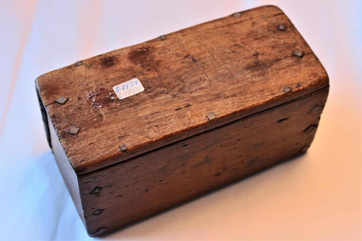 Saumakassi. Gefið af Sveinu Helgadóttur, Bólstaðarhlíð 56, Reykjavík. Hún er fædd í Gilsárvallhjáleigu 1898, dóttir Jóhönnu Jóhannesdóttur frá Króki í Meðallandi, f. 1870, og Helga Jónssonar, d. 1904: Saumakassi Jóhönnu, móður Sveinu, óskreyttur, trénegldur, strikaður og með dragloki. Smíðaður af Gissuri Pálssyni á Syðri-Steinsmýri handa Guðbjörgu dóttur hans ungri, f. 1836. Guðbjörg var móðir Jóhönnu.