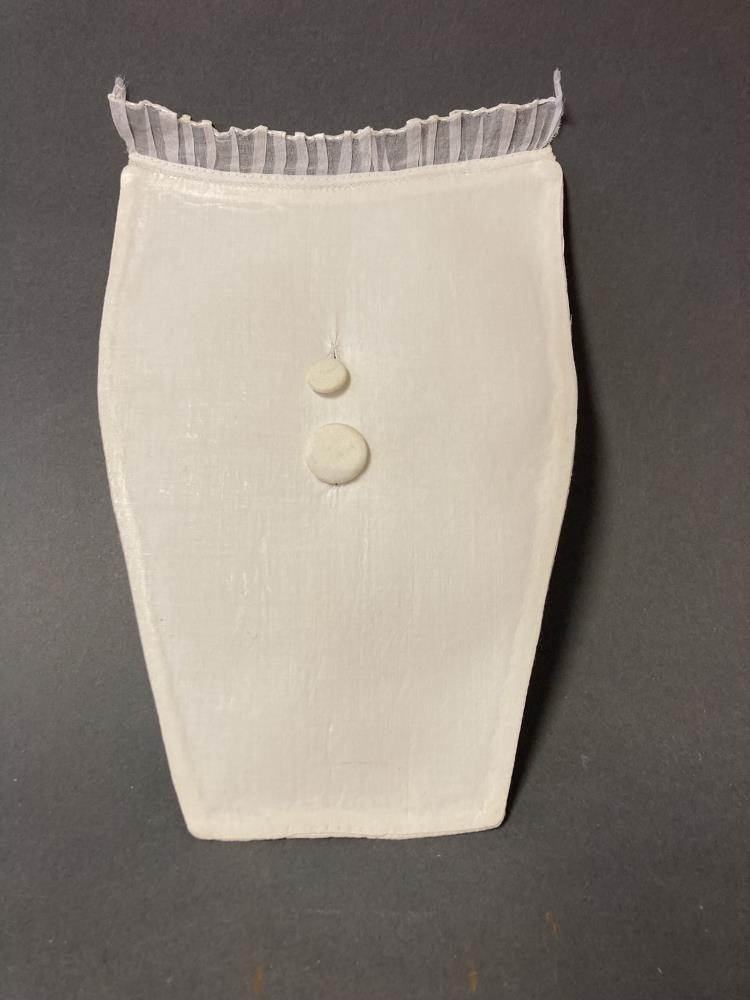 Brjósthlíf saumuð af Höllu Einarsdóttur. Gjöf frá Elínu Frigg Helgadóttur, Bólstaðarhlíð 60, Reykjavík.
