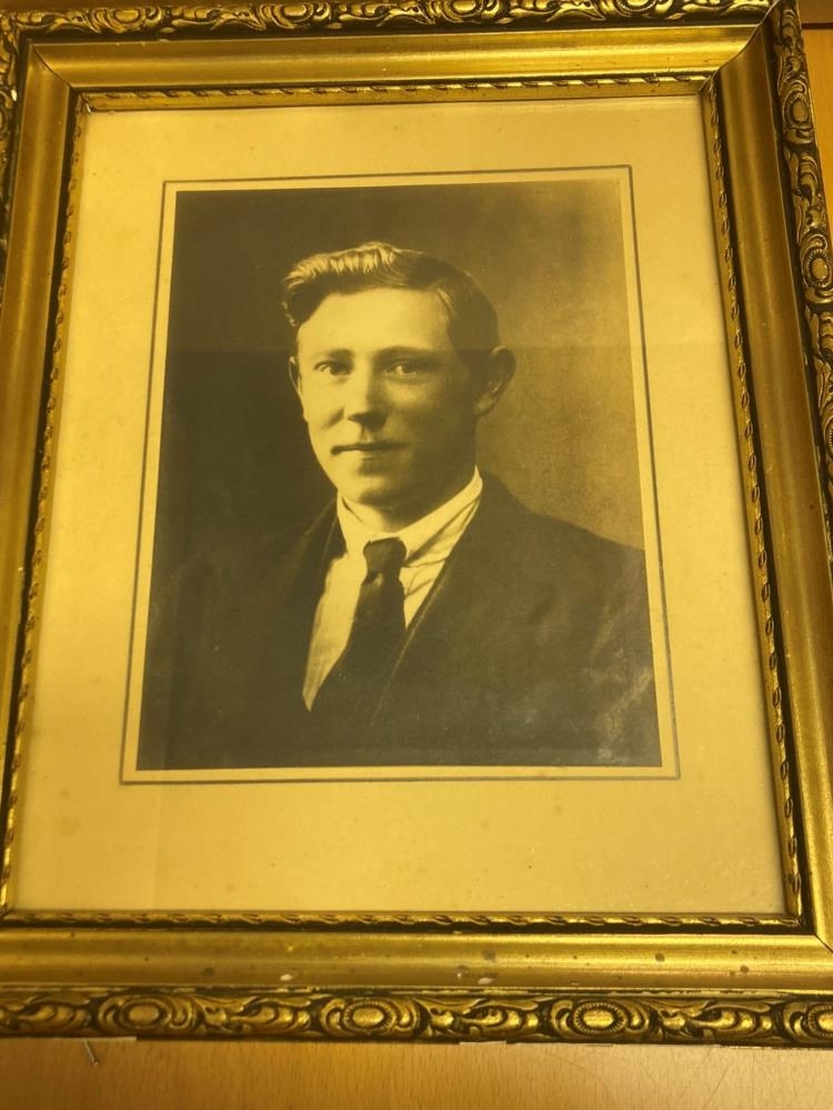 Stækkuð innrömmuð ljósmynd; Eyvindur Albertsson, stærð með ramma 33,5 x 27,5 cm. Eyvindur var í röð fremstu ungra manna í Rangárþingi, fjölmenntaður af lestri og safnari gamalla bóka. Nokkrar þeirra eru í Skógasafni.