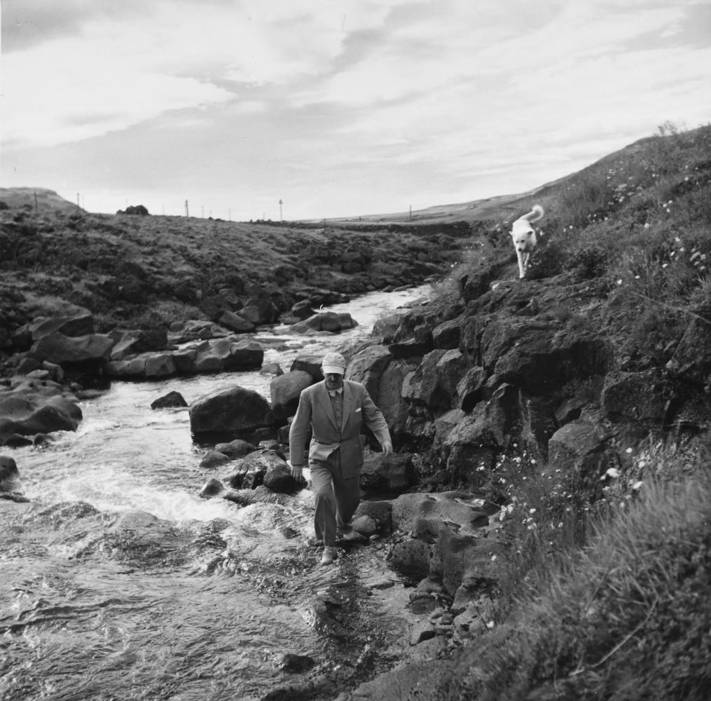 Halldór Laxnes í gönguferð niður með Köldukvísl í Mosfellsdal.
