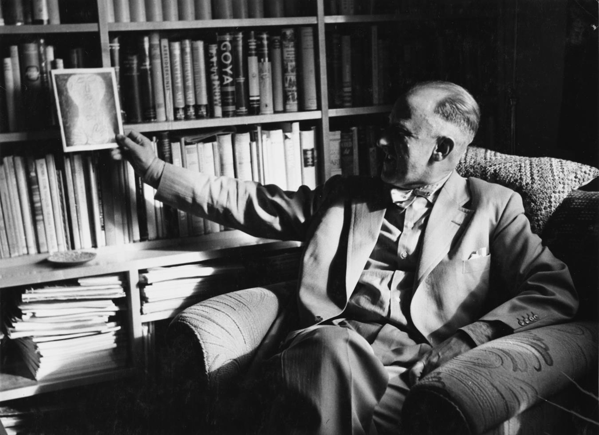 Halldór Laxness í vinnustofu sinni 1950. Sænski ljósmyndarinn Hans Malmberg tók myndina.