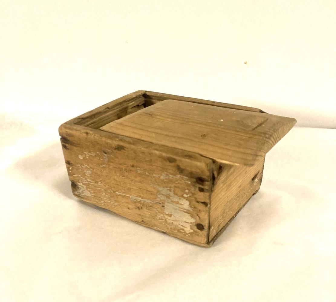 Stokkur sem nálhúsið (S-840) var geymt í. Er með dragloki, heldur óvandlega gerður.