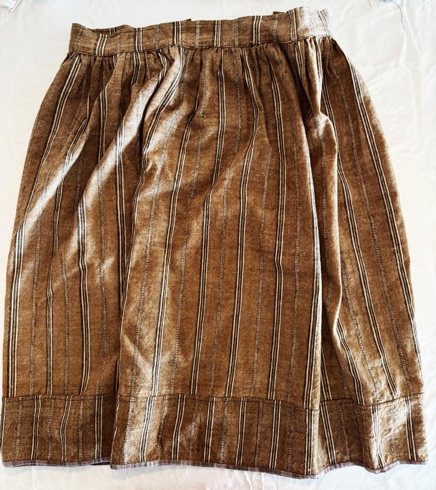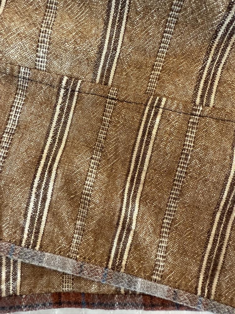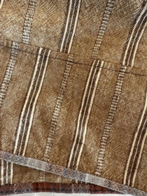 Millipils, brúnleitt, röndótt, með einskeftuvend, uppistaða garn, fyrirvaf band.