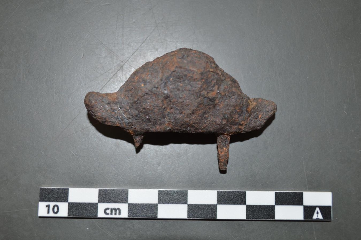 Sverðshnappur frá víkingaöld, hefur verið silfurlagður. Gefendur Ásgeir Auðunsson og Guðbjörg Auðunsdóttir frá Minnivöllum í Landsveit, nú búsett á Hólavangi 9, Hellu. Fundinn í uppblæstri í Svínhaga fyrir 1930 af Eiríki bróður gefenda (1908-1930). Kom fram úr dóti eftir hann látinn. Dys hefur blásið upp í Svínhaga en alveg er óljóst um hvort hnappurinn er úr henni. Hann er 6,5 cm á breidd, festingarrauf upp í hann miðjan og festingarnaddur niður sitt hvorum megin við hana, þrískiptur. Hefur verið skreyttur silfursnúrum og sjást þess enn nokkur merki. Hnappurinn samsvarar nokkurn veginn að stærð sverðshnappi frá Keldum á Rangárvöllum, þjms. 8844, en sá er fimmskiptur. Ásgeir og Guðbjörg gerðu sér ekki grein fyrir hve mikið dýrmæti þau færðu til Skógasafns í þessum litla sverðshnappi.