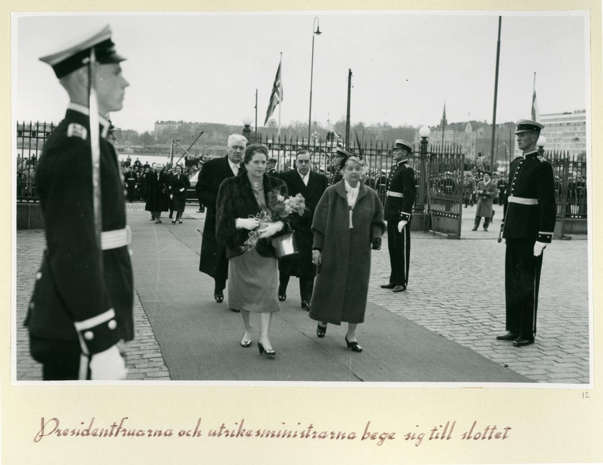 Skýringar á sænsku við flestallar myndirnar.: Presidentfruarnar och utrikesministrarna bege sig till slottet.