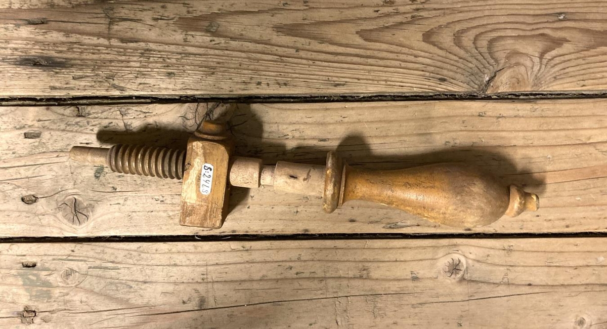 Skrúfnagli í spunarokk, ásamt níra. Lengd 28 cm. Gripir sem komu til safnsina 1985 frá Ágústu Vigfúsdóttur í Suður-Vík. og dætrum hennar, Matthildi Ó. Valfells og Ólöfu Ólafsdóttur.