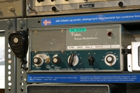 Talstöð, Fisher AM talstöð, framleiðsluland: USA, tíðnisvið: 2 – 3 mHz. Stærð: B 29,5 - H 14 – D33 sm. Efni: álundirstaða með grænum lokum og framhlið. Gefandi: Sigurður Harðarson rafeindavirki.