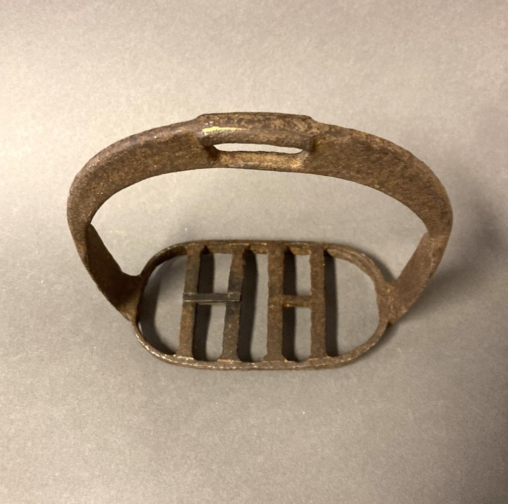 Ístað úr járni, hæð 16 cm. breidd 14,5 cm. Ístig með fangamarki: H.H., nú endurbætt af Þórði Tómassyni (leggur í H). Það hlýtur að vera úr eigu Högna Högnasonar í Vík í Mýrdal (1867-1947). Greinilega smíðað af Ólafi Filippussyni á Blómsturvöllum í Fljótshverfi nálægt 1910. Safnið á tvenn ístöð smíðuð af honum. Frá Suður-Vík í Mýrdal. Gefið af frú Ágústu Vigfúsdóttur og dætrum hennar Ólöfu Ólafsdóttur og Matthildi Valfells. Gripir sem lágu í lamasessi í geymslu. Lagfærðir af Þórði Tómassyni.