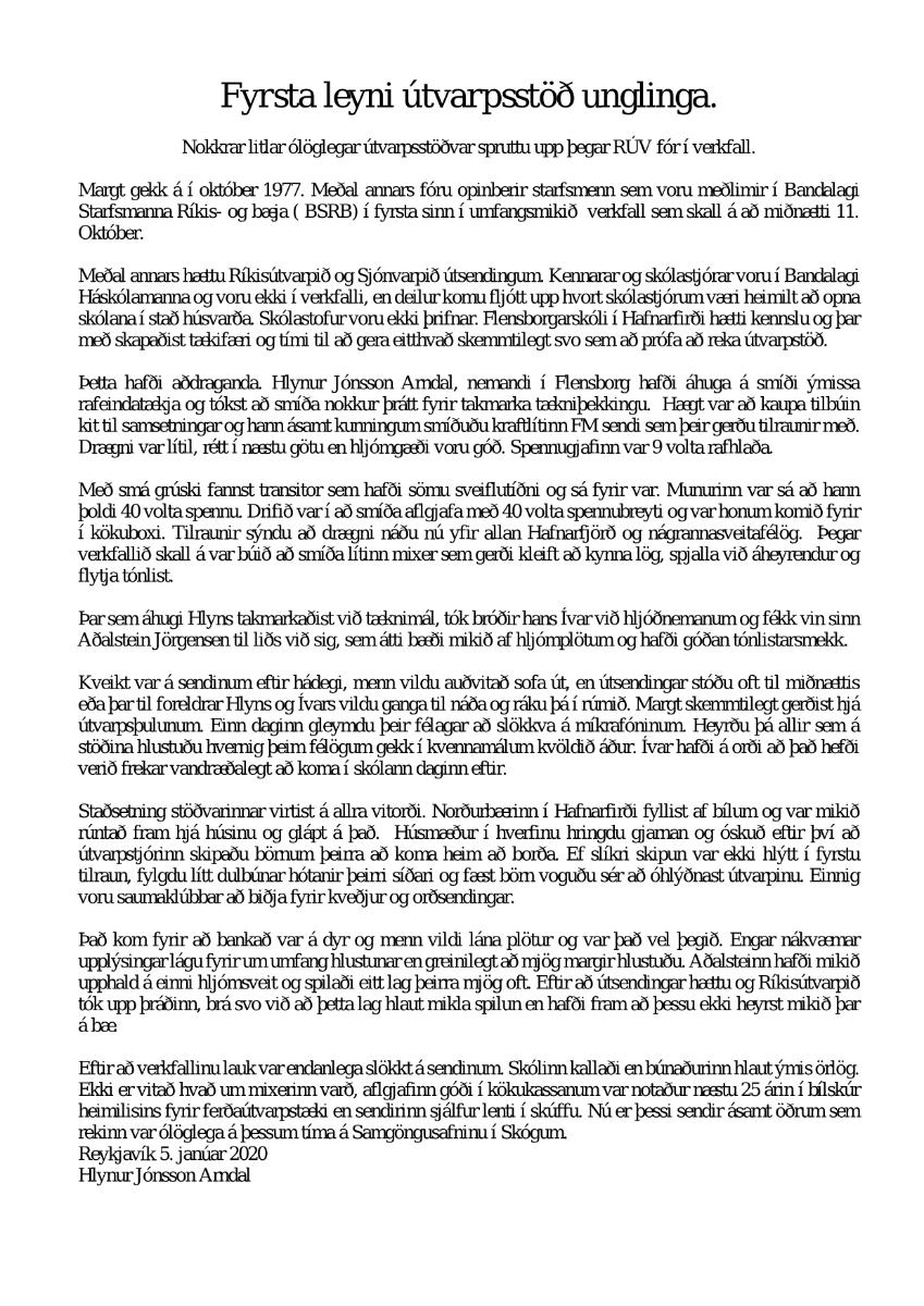 Samantekt heimildar: Sigurður Harðarson rafeindavirki