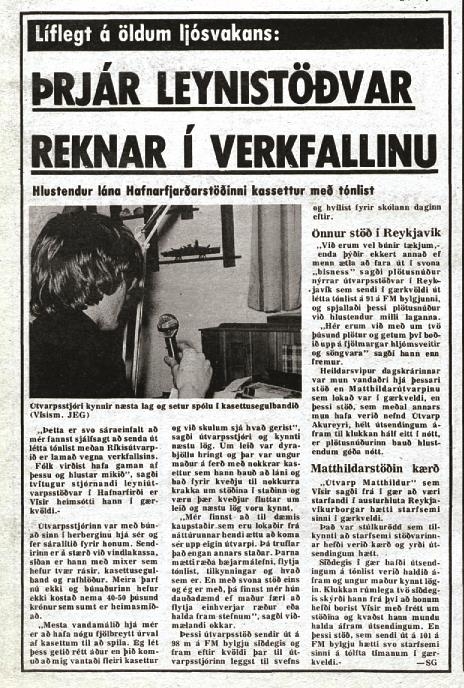 Þessari bílatalstöð var breytt til að nota sem útvarpssendir á FM 103 til að senda út fréttir og tónlist „Fréttaútvarpsins“ sem dagblaðið DV setti á laggirnar í víðtæku 27 daga verkfalli ríkisstarfsmanna sem hófst 4. október 1984. RUV hætti að senda út dagskrá og engin dagblöð komu út á sama tíma vegna verkfalls bókagerðamanna sem einnig voru í BSRB. Landið var því án útvarps og dagblaða um tíma. Ríkið var með einkarétt á útvarpssendingum.