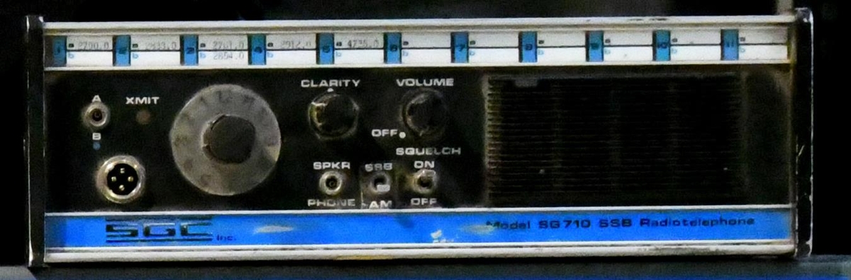 Talstöð, tegund: SGC-710 SSV Radiotelephone. Gerð:110w SSB talstöð 12 v DC. Framleiðsluland: USA, tíðnisvið: 2 – 9 mHz. Stærð B 30 - H 11 - D30 sm. Efni: Álundirstaða með bláum málmlokum og svartrii framhlið. Gefandi: Sigurður Harðarson rafeindavirki.