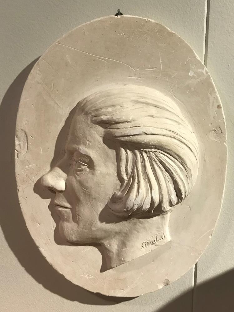 Lágmynd í gifs, sporöskjul,aga. Mannshöfuð. Merkt: Ól.Túbals.. Stærð 31,5 x 23 cm. Myndin hlýtur að tengjast námi Ólafs Túbals í myndlist en verk hans eru yfirleitt á sviði málaralistar. - Á bakhlið er letrað: HB 1929.