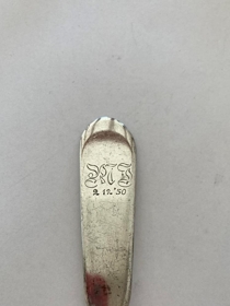 Silfurskeið Magnúsar Jóhannessonar í Alviðru, merkt: M.J. 2.12.'50.