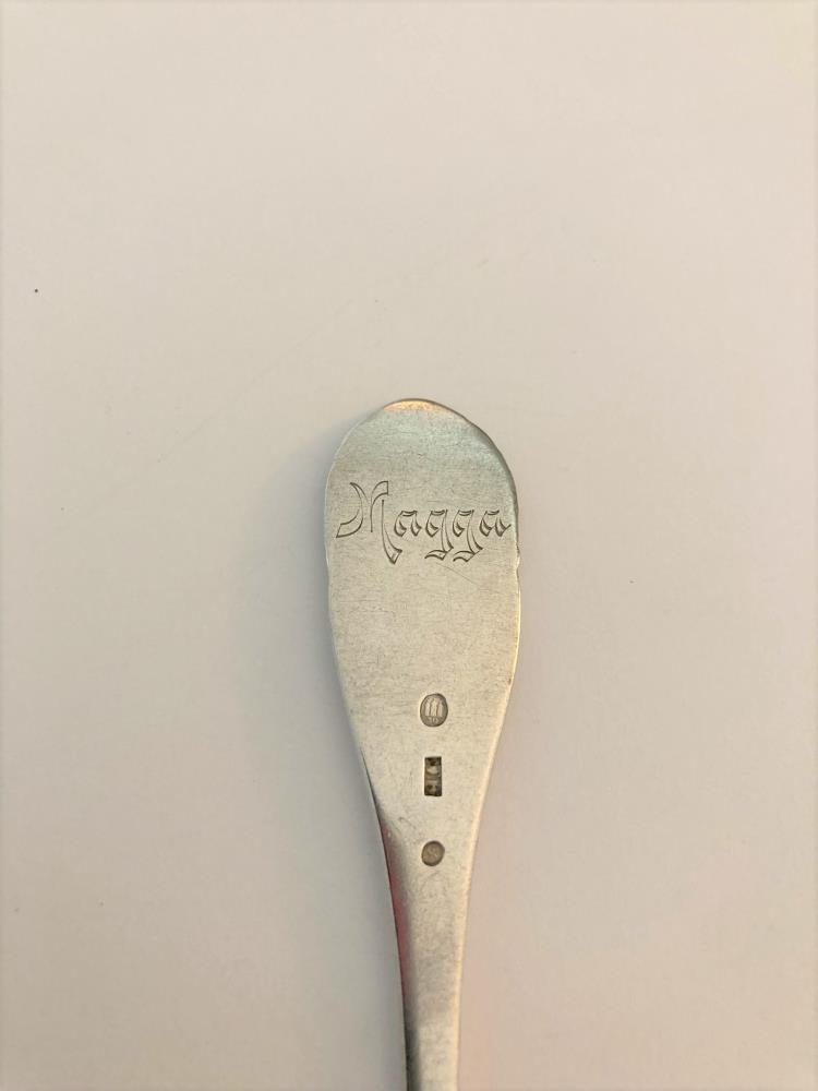 Silfurskeið Margrétar Árnadóttur frá Alviðru (d. 18.12.1968), merkt: MAGGA.