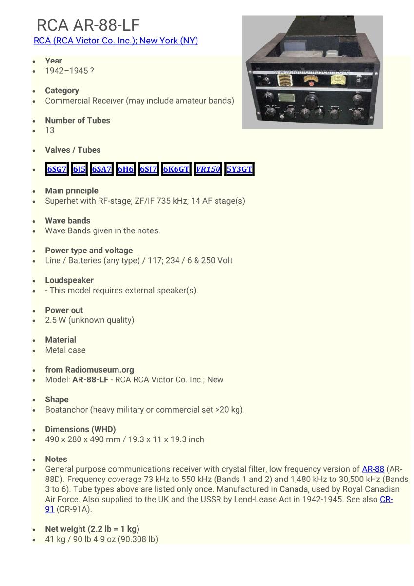 RCA AR-88.LF Stuttbylgjuviðtæki
