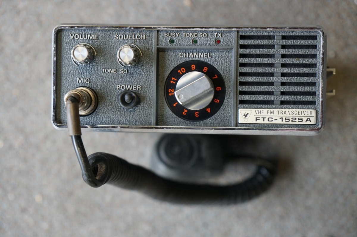 Talstöð, tegund: YAESU FT-1525, gerð: VHF talstöð. Framleiðsluland: Japan. Tíðnisvið: 134-174mHz. Stærð B 18 - H 67 - D29 sm. Efni: Ál undirstaða með grábláum lokum og grárri framhlið. Gefandi: Sigurður Harðarson rafeindarvirki
