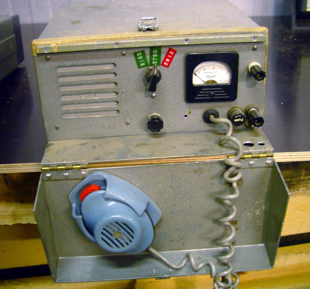 Talstöð, tegund: FF-10, gerð: AM 10 w. burðastöð fyrir björgunarsveitir, framleiðandi: Landsíminn. Tíðnisvið: 2790 – 2912 kHz, stærð: B 27 - H 12 - D 27 sm. Efni: álundirstaða ásamt kassa og ljósri framhlið.