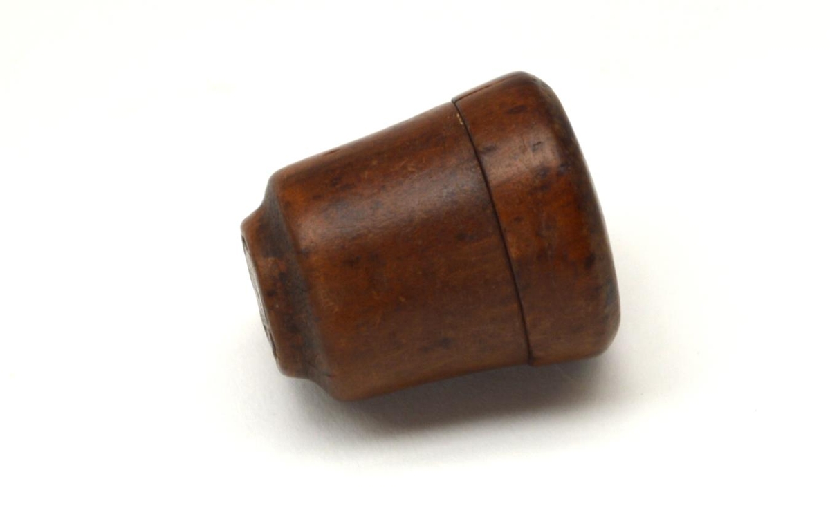 Lítill parabaukur úr tré, renndur. Verk Steingríms Jónssonar á Fossi. Gefið af Signýju Sveinsdóttur frá Þykkvabæjarklaustri.