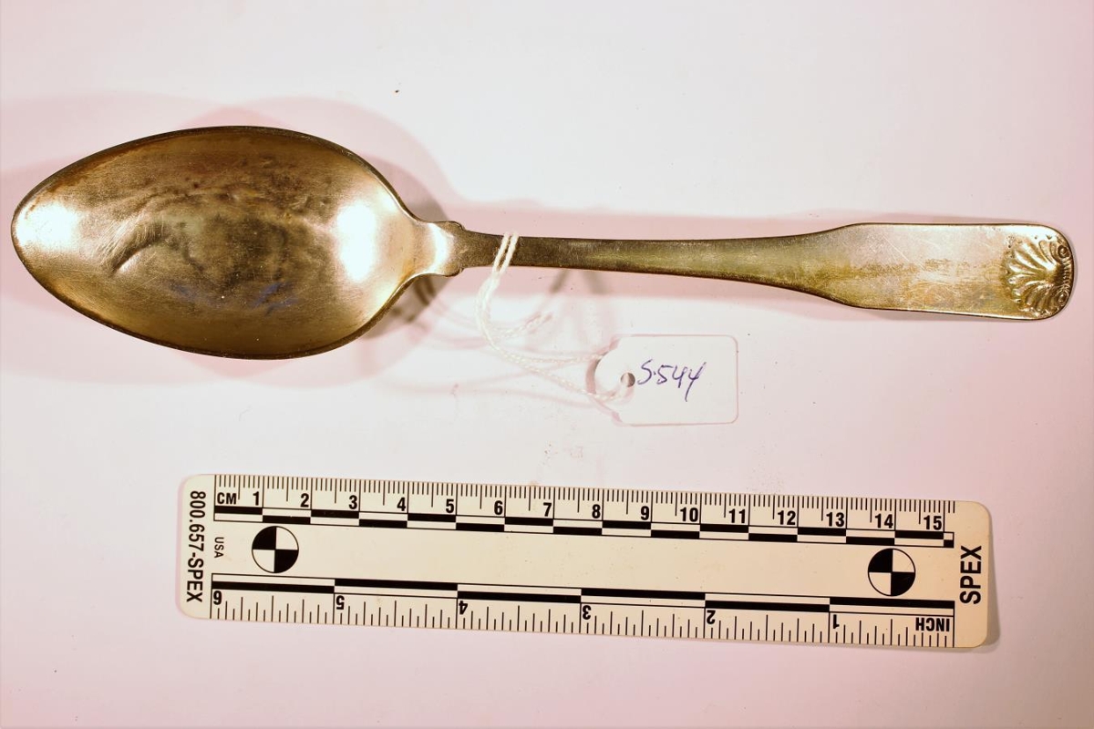 Matskeið Kristínar Símonardóttur í Gröf, er sögð silfurskeið. Stimpluð PP.