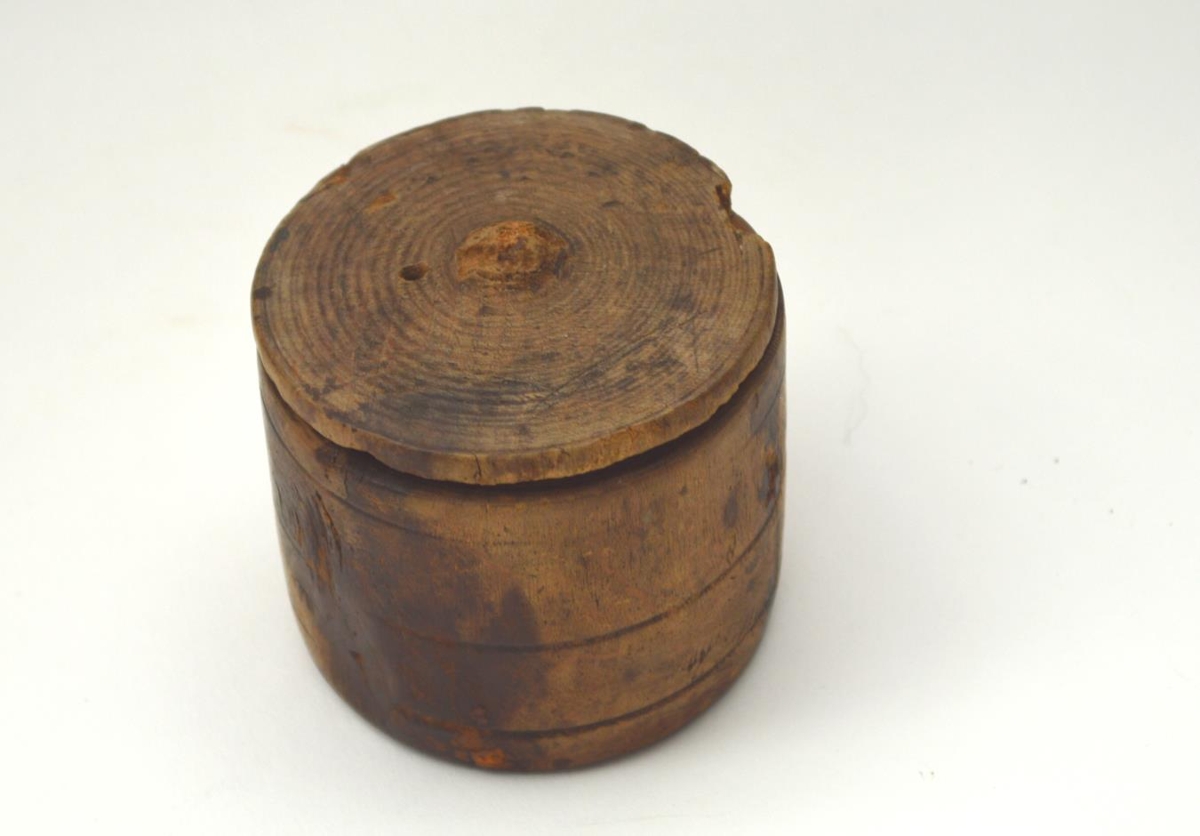 Aurabaukur Símonar mállausa, Davíðssonar föður Kristínar í Gröf. Þetta er renndur trébaukur með loki, hæð 5,6 cm. Þverm. 6 cm.