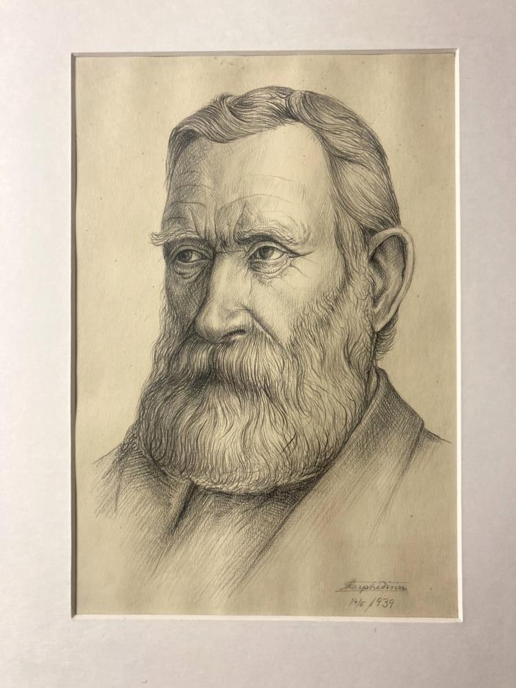 Símon Jónsson í Vík, f. 1872, d. 1961. Merkt 14.05.1939. Skrá yfir teikningar Skarphéðins Haraldssonar (Héðins) frá Kerlingardal er hann gerði af nokkrum Mýrdælingum og gaf Skógasafni 1986. Um þær hefur verið skrá á lausu blaði. Safnið lét innramma þær í fyrirtækinu Samverki á Hellu. Stærð teikninga er 31 x 21 cm. Stærð á römmum 52 x 70 cm.