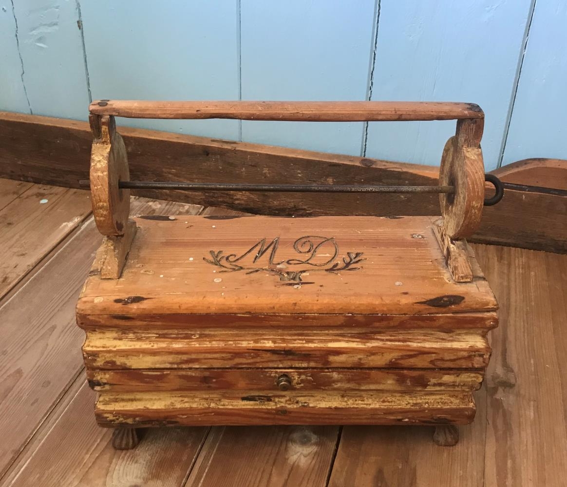 Snældustokkur smíðaður af Bjarna Runólfssyni í Hólmi fyrir 1920. Merktur móður gefanda, Margréti Davíðsdóttur M.D. Er með skúffu. Stór og efnismikill. Gefið af Þorláki Stefánssyni í Arnardrangi.
